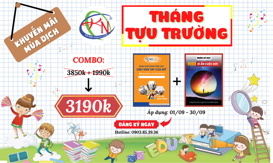 - Đặc biệt: COMBO 2 BÀI SINH TRẮC VÂN TAY và NHÂN SỐ HỌC: CHỈ 3.190.000đ (giảm 2.650.000đ so với đăng ký bài lẻ)